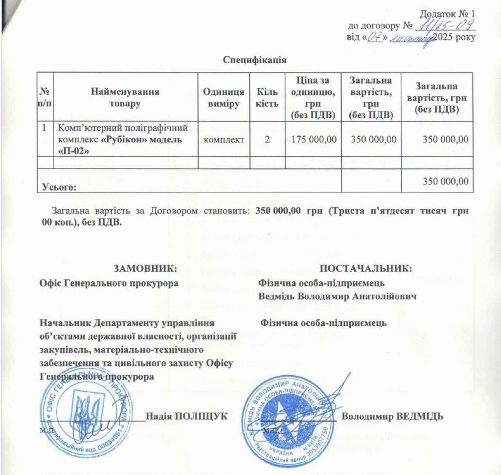 Постачання двох комплектів поліграфів RUBICON до Офісу Генерального прокурора — це не лише чергова робоча перемога Об’єднання «Ведмідь, Іщук та партнери». Це — чергове підтвердження того, що українська поліграфна індустрія здатна забезпечити державні установи надійним, сучасним і сертифікованим обладнанням без переплат і без залежності від закордонних сервісів.